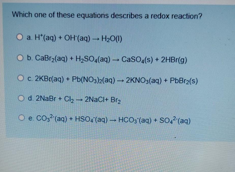 Solved Which Equation Describes A Redox Reaction 2 Ai S Chegg Com